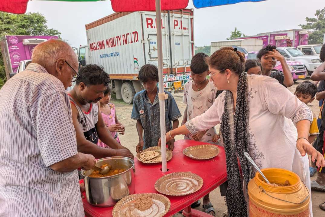 Distribution of food amongst underprivileged through Roti on Wheels was carried at a bustee near Anandapur police station.
